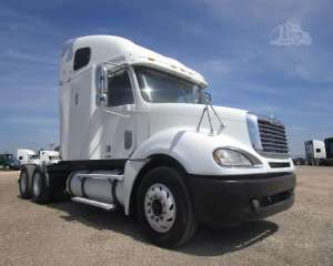 | 2004 Freightliner Columbia 120 6x4 Double Diff C-15 Cat engine, 10 Spd; C-15 Caterpillar Engine Manufacturer 435 Horsepower; Diesel Fuel Type; Tandem Axle; White Color; Yes Engine Brake; 3.73 Ratio; 22.5 Tires; Aluminum Wheels; 216 in Wheelbase; 58 in Raised Roof Sleeper; Drive Side: Left Hand Drive; Double Bunk, Sliding 5th Wheel, Single Exhaust,