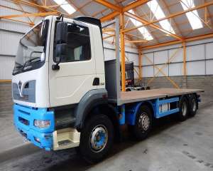 ZF 16 Speed Syncromesh Manual Gearbox, Rockwell Meritor RT153E Single Reduction Drive Axles C/w Diff/Cross Locks, Peterbilt Airtrack Drive Axle Air Suspension, 25Ft Flatbed Body C/w Steel Flooring And Raise, Headboard, Aluminium Side Bar Safety Rails.